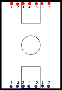 Divide participants into two teams. Have each player pair up with someone from the opposite team. Try to encourage kids of a similar age / speed to pair up as they will be competing directly with their partner. Have each team line up on a wall across opposite each other. Pairs should be directly across from each other. Number each pair.